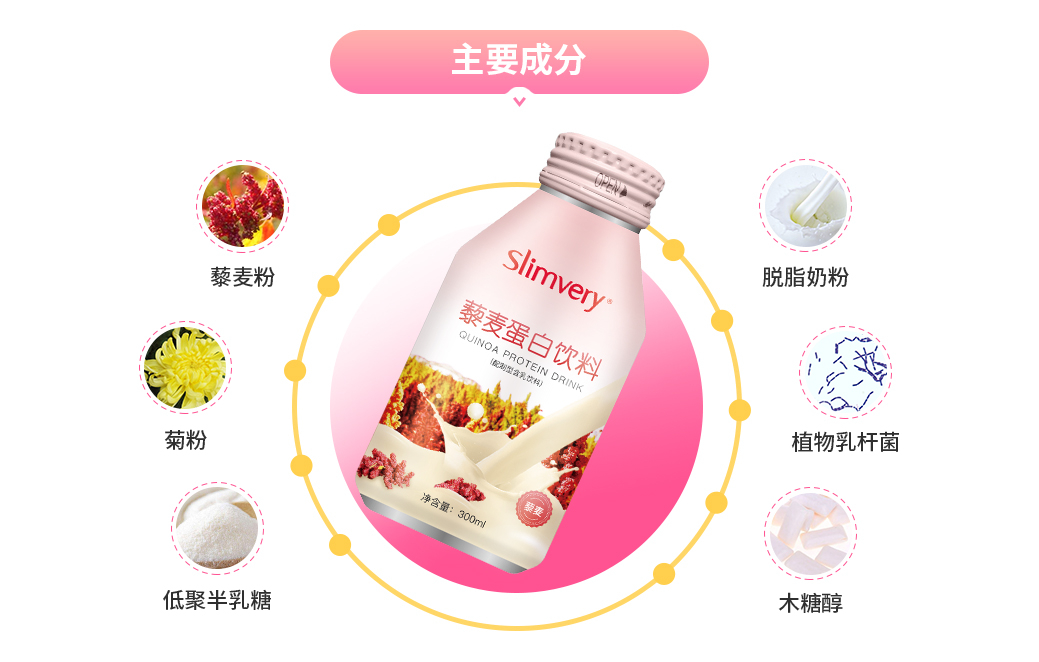 藜麦粉、脱脂奶粉、植物乳杆菌、干酪乳杆菌、综合维生素、菊粉、低聚半乳糖